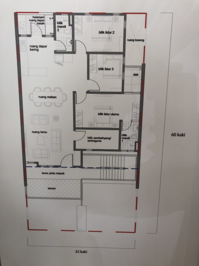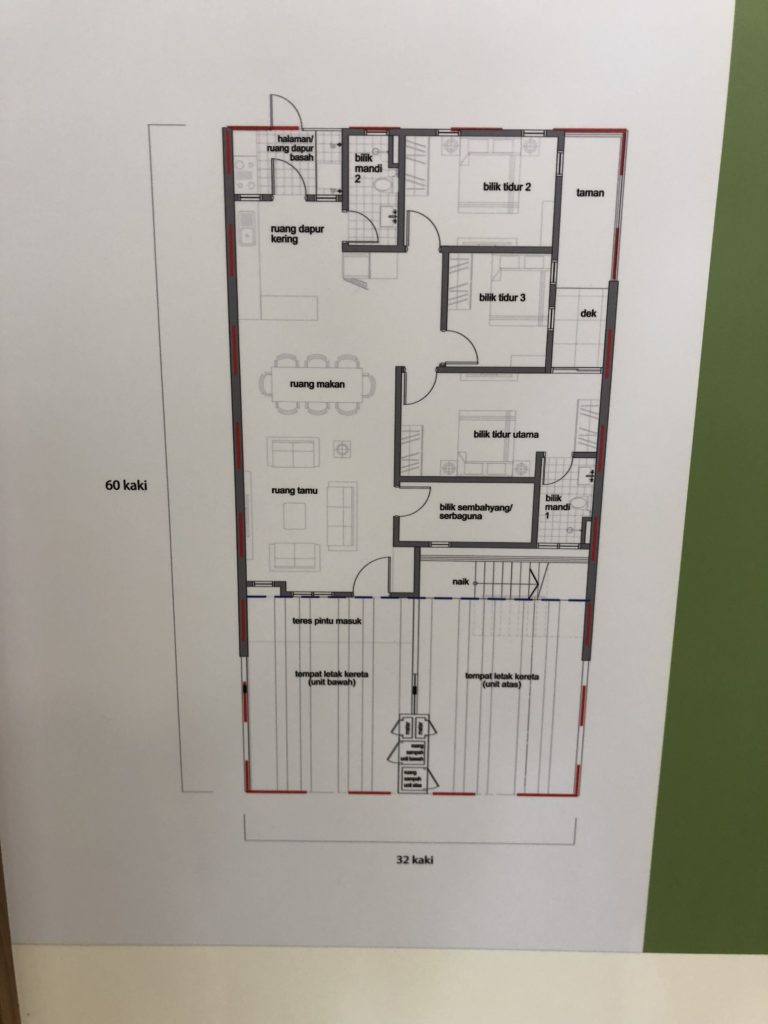 Keluasan: 32’ x 60’ (1496 kaki persegi)