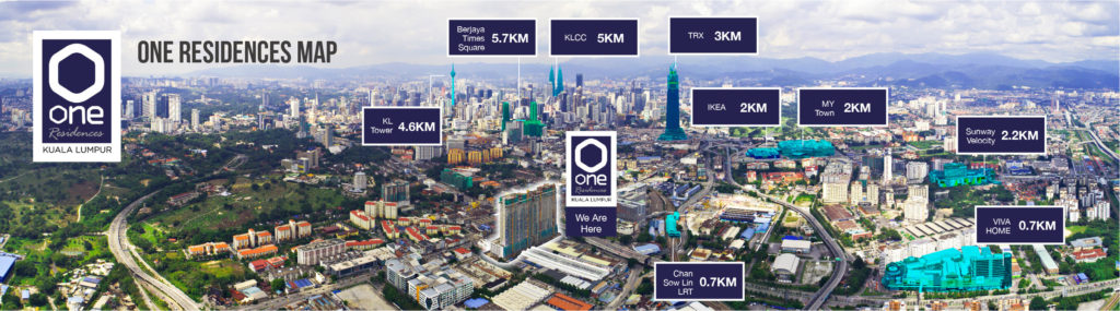 One Residences can be easily accessible via Jalan Sungai Besi and Jalan Chan Sow Lin. It is easily linking to the adjacent route such as Smart Tunnel, Jalan Istana, Jalan Loke Yew, Jalan Tun Razak, North-South Expressway and the upgraded Sungai Besi Expressway. The common connected North–South Expressway linking to major expressways like New Pantai Expressway, Kesas Highway (Shah Alam Expressway) and Middle Ring Road 2.